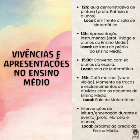 Segue a programação atualizada com os coordenadores de cada atividade que irão ajudar no dia para que todo o trabalho aconteça.